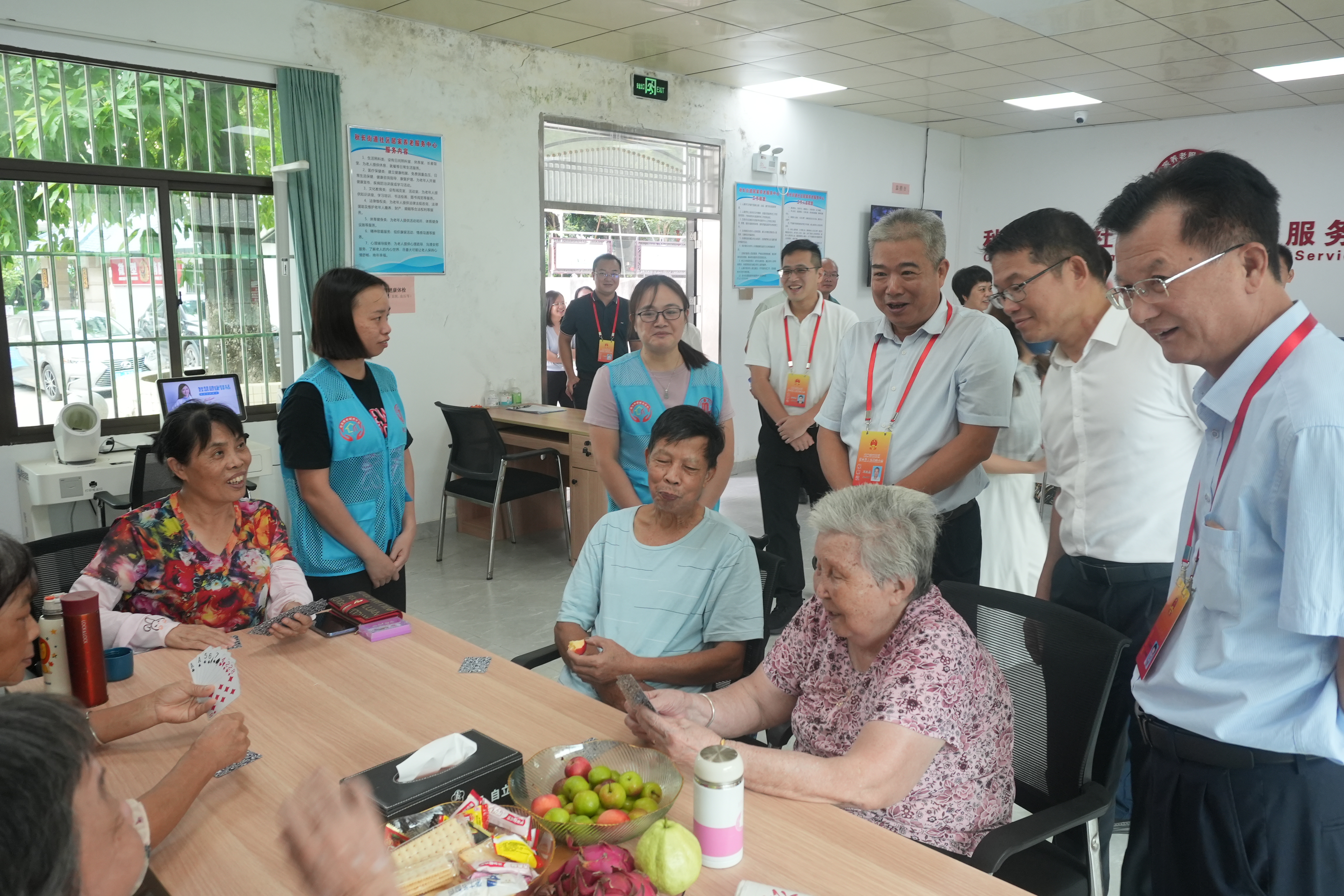 區(qū)人大代表實(shí)地了解長(zhǎng)者在社區(qū)居家養(yǎng)老服務(wù)中心內(nèi)活動(dòng)開展情況。