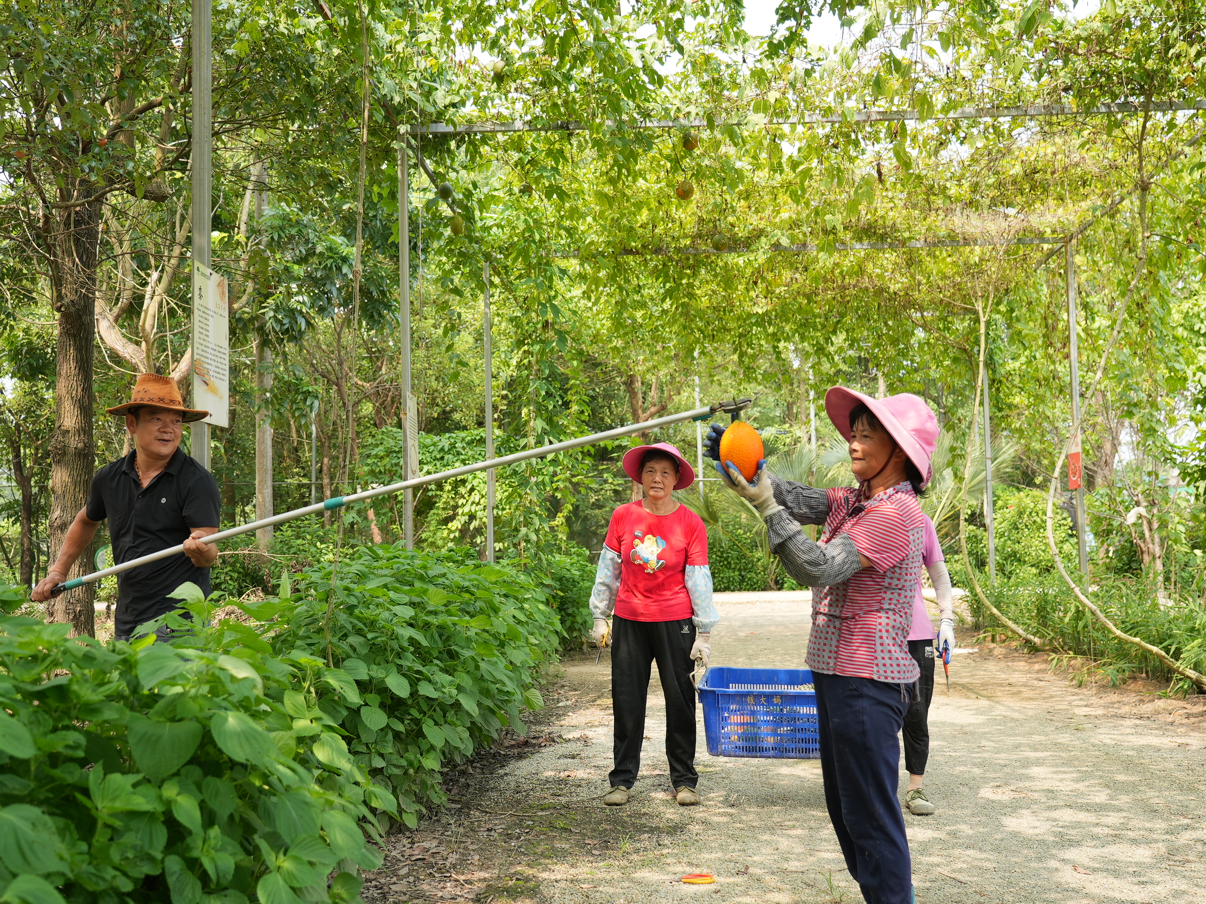 今年55歲的陳玉梅戴著帽子、袖套,拿著剪刀嫻熟地采收各類水果。她家住惠陽區(qū)良井鎮(zhèn),離生態(tài)園很近,每天都會從家騎車過來幫忙采摘蔬果。“這份工作做得很開心!既能照顧老人、小孩和家庭,又有一份穩(wěn)定的收入,一年下來能有近5萬元。”
