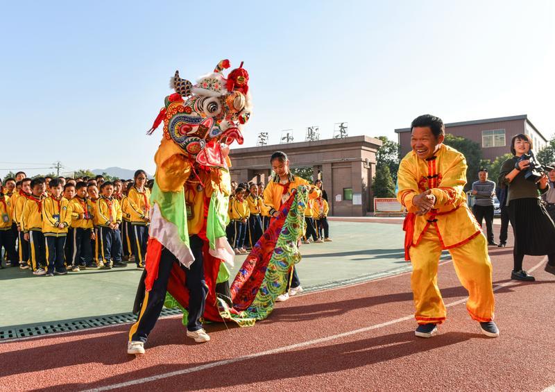 非遺麒麟舞進(jìn)校園。惠州日?qǐng)?bào)記者許文昌 通訊員盧嘉敏 攝