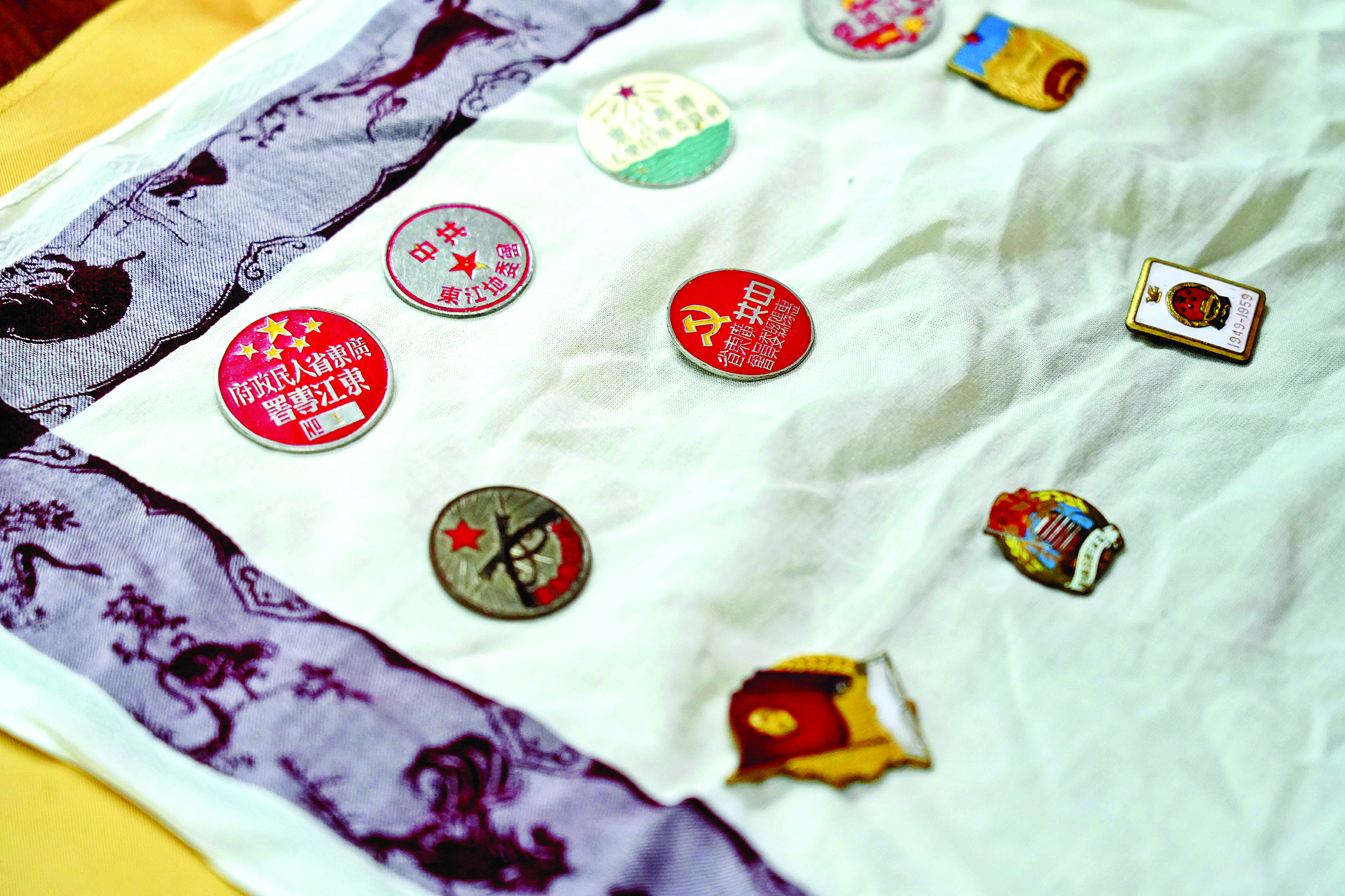 葉鋒家屬捐贈(zèng)的各類徽章。惠州日?qǐng)?bào)記者許文昌 攝
