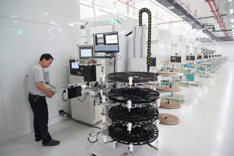 深臺(tái)幃翔電子公司生產(chǎn)車間。 惠州日?qǐng)?bào)記者許文昌 攝