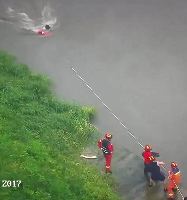 “到達現(xiàn)場時,心一下子提到了嗓子眼。”看到漂在河面的女子,參與救援的隊員回憶道。12時09分,救援隊伍抵達現(xiàn)場,通過肉眼觀察和街道指揮中心 “高空鷹眼” 實時監(jiān)測發(fā)現(xiàn),落水者已被湍急的河水沖到河中央,在洪水中漂浮。持續(xù)的強降雨讓淡水河流水位暴漲,水流速度極快。更令人揪心的是,落水者似乎已意識模糊,隨時可能被河水沖走,情況萬分危急。