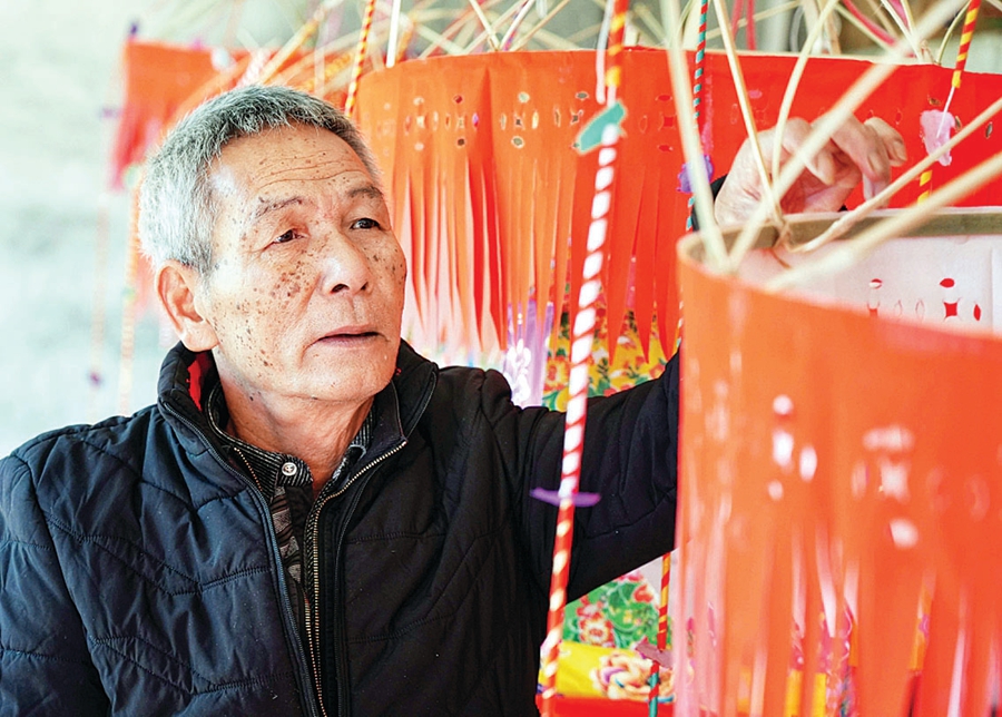 何廖福還告訴記者,他七歲開(kāi)始跟爺爺學(xué)做花燈,虎頭花燈以竹、紙為主要材料,它的制作過(guò)程主要包括扎架、剪紙、卷燈帶、裱糊、做燈斗與鳳雞等。