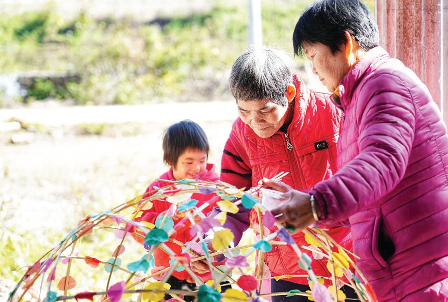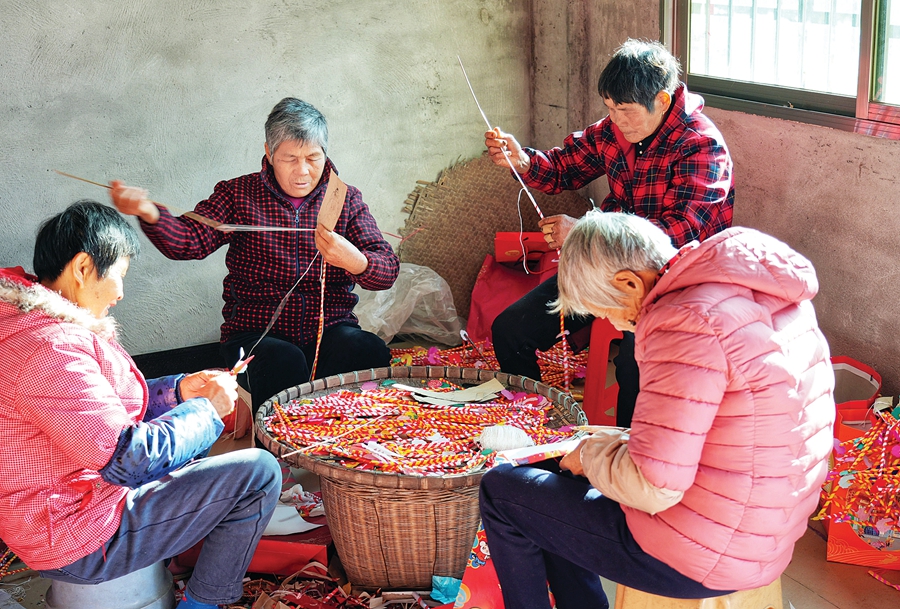 將虎頭花燈送到各村小組祠堂掛起來(lái)。