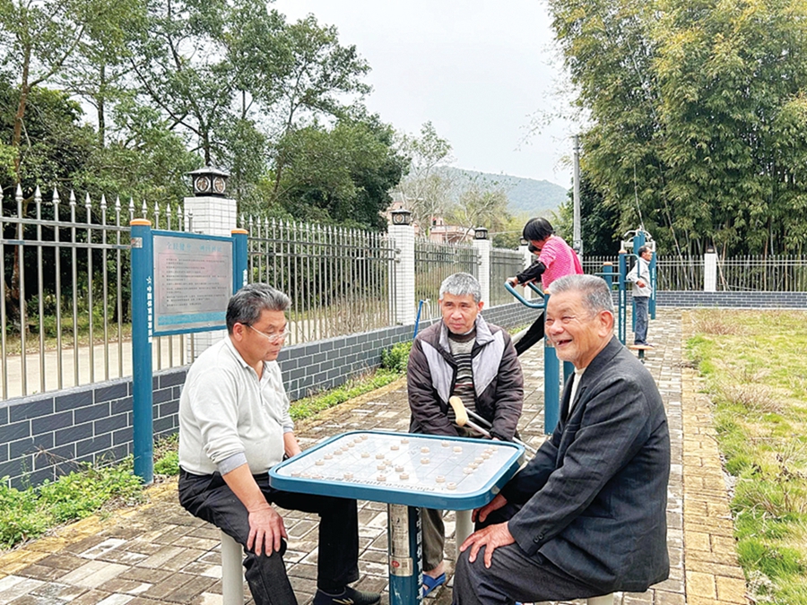 羅坑村大陂村民小組老年人在康樂(lè)園下棋聊天。 惠州日?qǐng)?bào)記者黃宇翔 通訊員龍融心 攝
