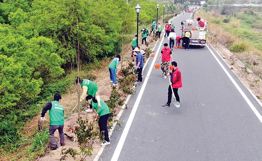 參加活動(dòng)的干部群眾扶苗、培土、澆水,沿著5公里濱江碧道種下一棵棵樹(shù)苗、栽下行行新綠。“植樹(shù)雖然很累,但是心里非常充實(shí),也感受到了大自然需要大家去愛(ài)護(hù)。”活動(dòng)中,與家長(zhǎng)一同參加活動(dòng)的小志愿者黃嘉懿在種下一棵小樹(shù)苗后開(kāi)心地說(shuō)。據(jù)了解,本次活動(dòng)吸引了近200名干部群眾參加,大家齊心種下紫花風(fēng)鈴木、小葉紫薇、大腹木棉、鳳凰木等樹(shù)苗超1500株。