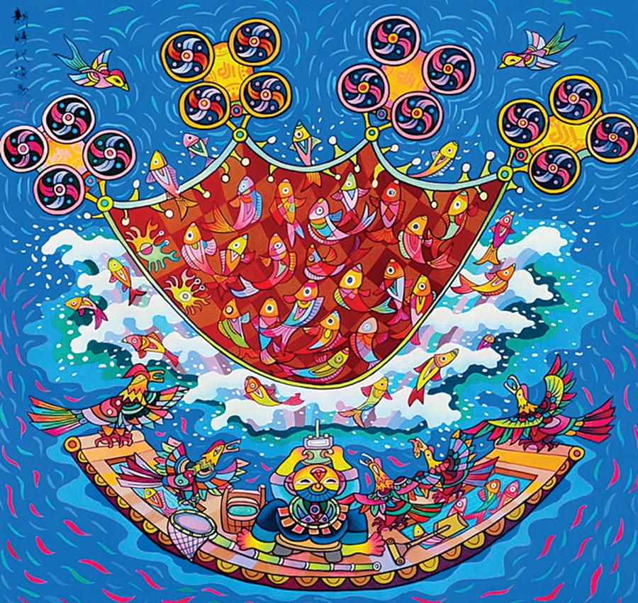龍門農(nóng)民畫描繪了人民群眾為創(chuàng)造美好生活而奮斗的精神面貌。 惠州日報記者黃宇翔 通訊員龍融心 攝