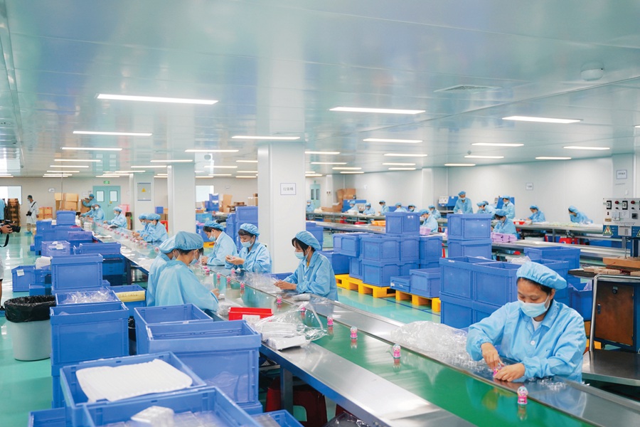 位于龍門工業(yè)園的惠州市深同躍實業(yè)有限公司生產(chǎn)線上,工人們加緊生產(chǎn)。 惠州日報記者湯渝杭 攝