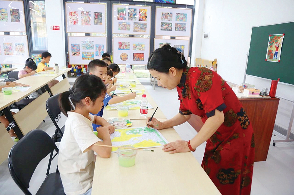 龍門農民畫畫家因材施教激發(fā)孩子們學習繪畫的興趣。