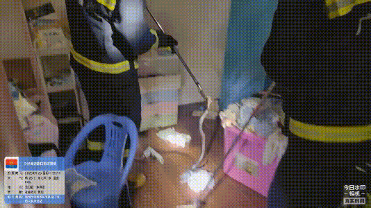 消防員立即使用捕蛇工具