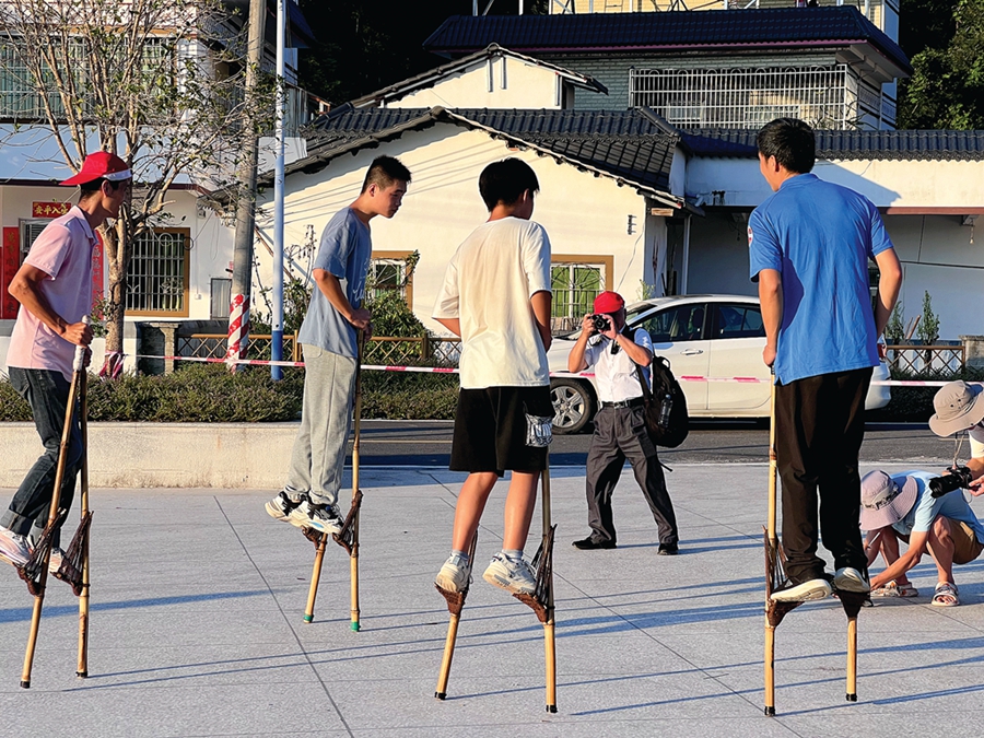 活動現(xiàn)場設(shè)有高腳、陀螺、板鞋等藍(lán)田少數(shù)民族傳統(tǒng)體育運(yùn)動項(xiàng)目觀摩環(huán)節(jié),這不僅是一場充滿趣味的對決,也是一次滿載快樂的體驗(yàn)。活動現(xiàn)場,游客們分成多個小組參與這些“趣味大闖關(guān)”活動,并領(lǐng)取獎品或紀(jì)念品,近距離體驗(yàn)少數(shù)民族傳統(tǒng)體育文化。