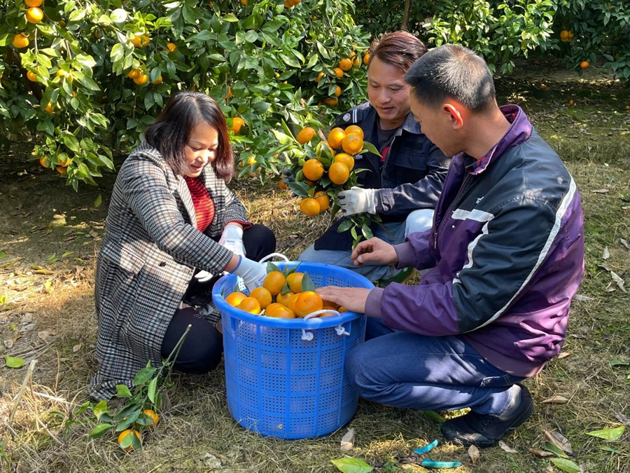 麻榨鎮(zhèn)中心村的沃柑種植基地里,工人一起采摘沃柑,臉上洋溢著豐收的喜悅。 惠州日報記者黃宇翔 通訊員龍融心 攝