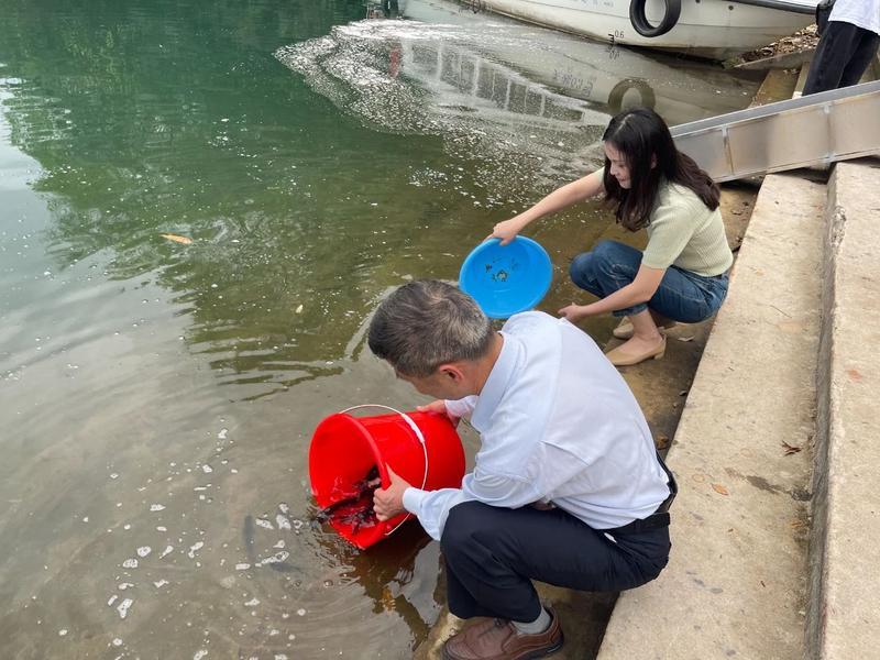 天堂山水庫(kù)開(kāi)展魚(yú)類(lèi)增殖放流活動(dòng),以實(shí)際行動(dòng)改善水域生態(tài)環(huán)境。 惠州日?qǐng)?bào)記者黃宇翔 通訊員龍融心 攝