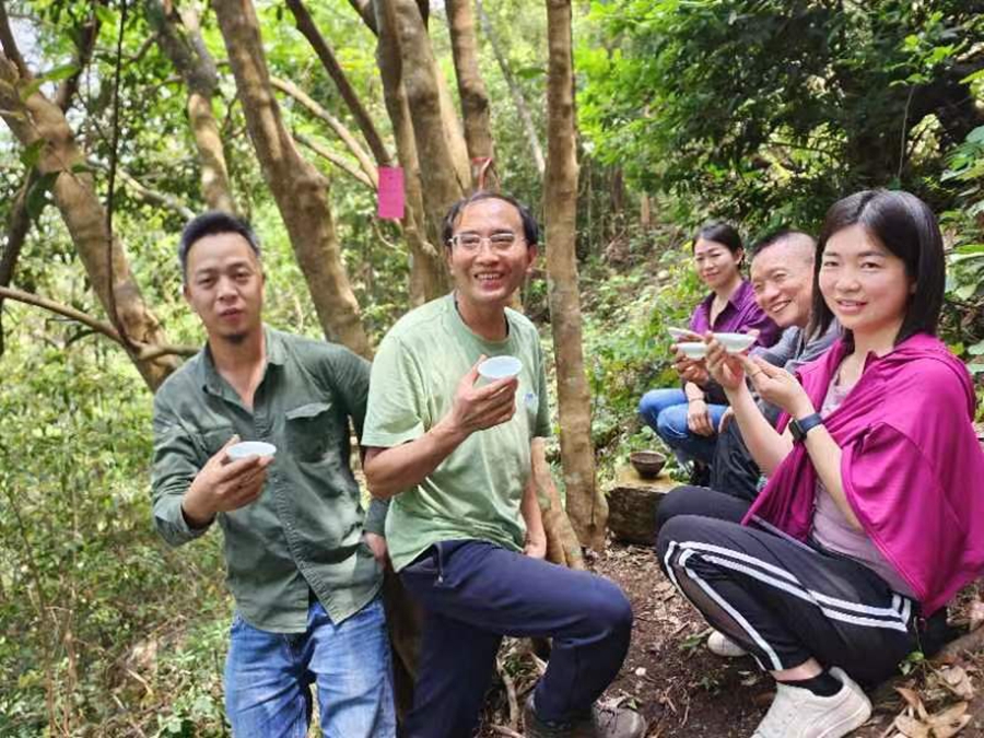 大家在古茶樹(shù)下品嘗點(diǎn)茶。