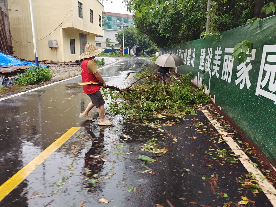 龍門村(社區(qū))“兩委”干部清理路面倒塌樹木,確保道路暢通。惠州日報記者黃宇翔 通訊員譚翠蓮 攝