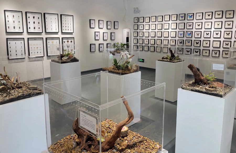 藍(lán)田瑤族鄉(xiāng)小洞村昆蟲科普展館內(nèi)昆蟲標(biāo)本琳瑯滿目。 惠州日?qǐng)?bào)記者黃宇翔 通訊員龍融心 攝