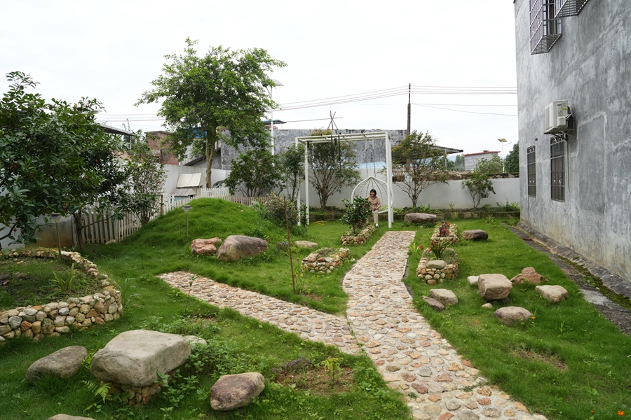 據(jù)悉,院子里的每一處風(fēng)景都由鐘志星一人獨(dú)自精心設(shè)計(jì)后,打造出來(lái)。“我喜歡花草園藝,平時(shí)對(duì)園林設(shè)計(jì)也有所接觸。前兩年長(zhǎng)期待在家,有很多時(shí)間在院子里搗鼓,也算樂(lè)在其中。現(xiàn)在院子里種有嘉寶果、雞蛋果、櫻桃以及一些蔬菜,不僅可以吃,還可以美化院子。”鐘志星說(shuō),庭院打理好之后,家人對(duì)庭院的綠化特別用心,日常維護(hù)、打理已成為他們的休閑方式。每逢閑暇之余,一家人便在自家庭院修剪花草,堆砌石景。