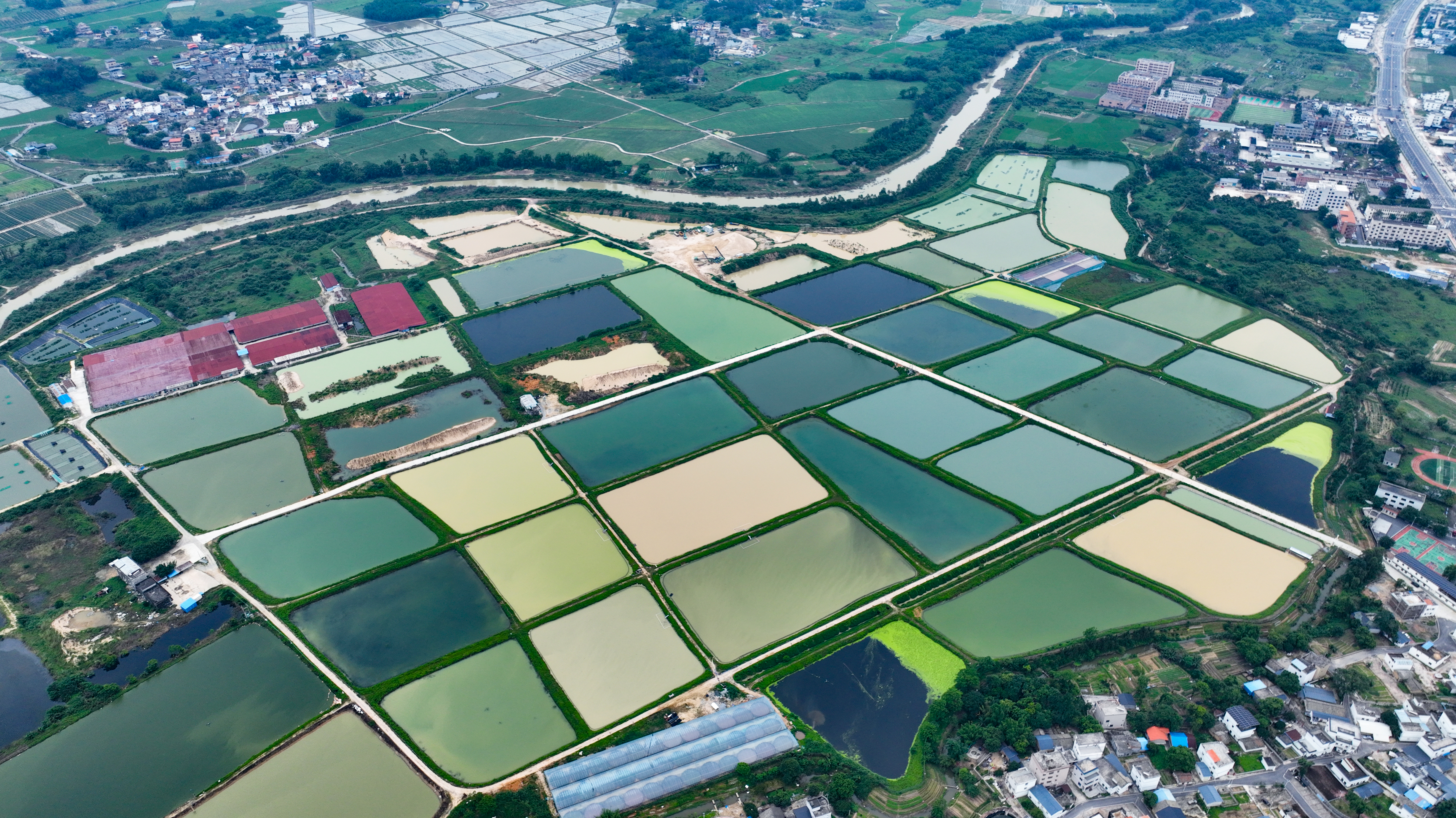 山水如畫(huà),風(fēng)景如詩(shī)。在龍門縣龍?zhí)镦?zhèn)西埔村,一望無(wú)際的田野中嵌入了一塊碩大的“眼影盤”,它由數(shù)十塊形狀各異的水塘拼接而成,在和煦陽(yáng)光的映照下淡雅明麗,仿佛期待著有人用它裝點(diǎn)山水。