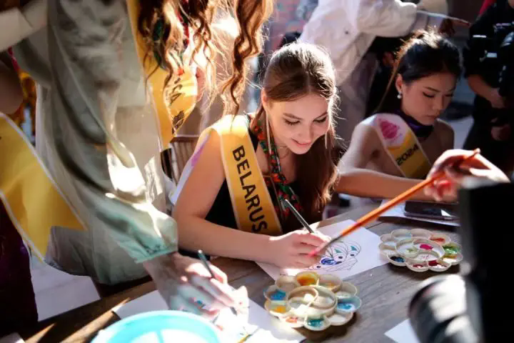 龍門農(nóng)民畫那濃烈鮮艷的色彩、質(zhì)樸生動(dòng)的風(fēng)格深深吸引著世界旅游小姐,她們紛紛與農(nóng)民畫作品合影留念,舉手投足間盡顯迷人風(fēng)姿,構(gòu)成了一道文化與美人相互輝映的靚麗風(fēng)景線。