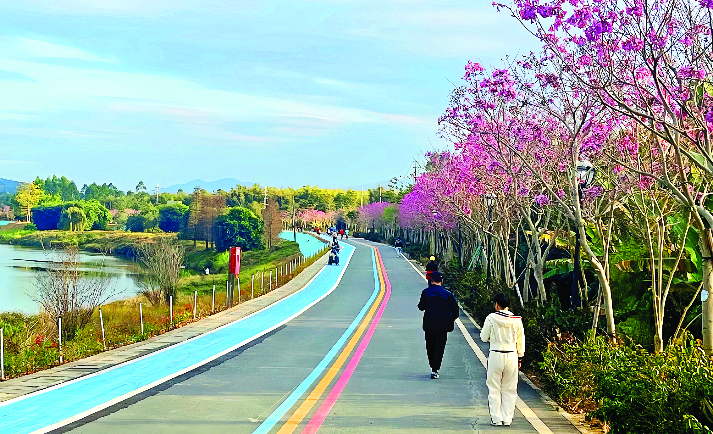 日前,記者在龍城街道水西村濱江碧道水西橋段看到,濱江碧道經(jīng)過提升改造后煥發(fā)新的活力。碧道兩側(cè)拓寬并增設(shè)了欄桿和觀景臺,綠化植被更加豐富多彩,不少市民在這里跑步、騎行、散步,享受煥然一新的休閑空間。市民廖先生每天都會來這里跑步,見證了碧道從年前開始施工以來不斷變化的過程,對現(xiàn)在的環(huán)境贊不絕口:“這里非常舒適,跑步的時候感覺心情特別好。”