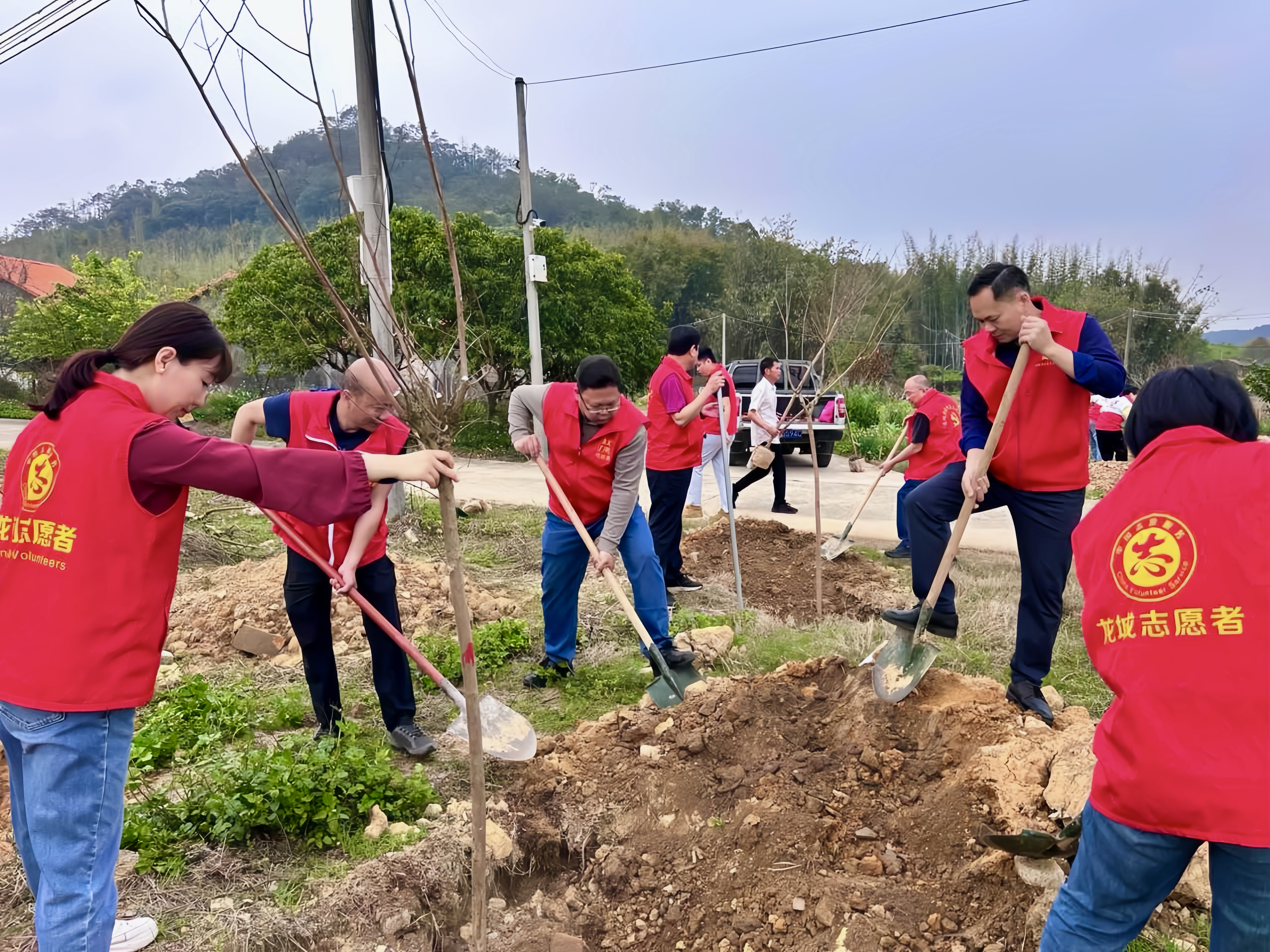 龍城街道戴屋村龍門大橋義務(wù)植樹點現(xiàn)場。