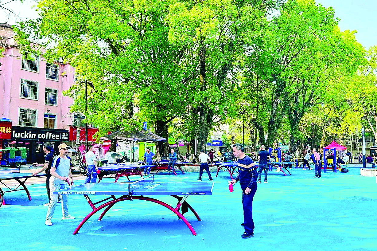 市民在煥然一新的東較文化廣場切磋球技。 龍門縣融媒體中心供圖