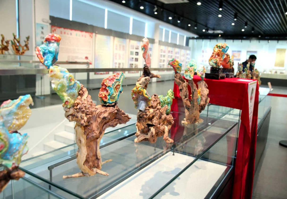 最為熱鬧的當(dāng)屬奇石藝術(shù)作品展區(qū)。兩百多件千姿百態(tài)的奇石錯(cuò)落陳列,令人嘆為觀止。觀眾們穿梭其間,不時(shí)發(fā)出陣陣驚呼。他們有的在形似峻嶺的巨石前感慨自然造物之神奇;有的則圍聚在紋路酷似山水畫卷的雅石旁,品評(píng)其韻味。