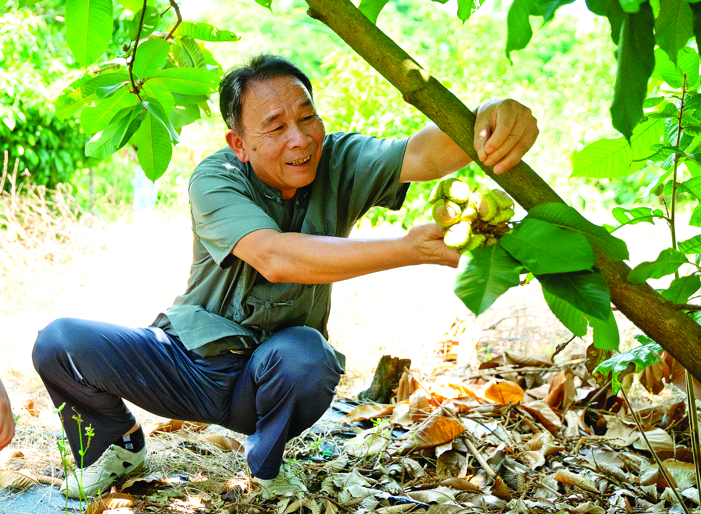 種植戶李周文正在采摘新鮮的馬古栗。惠州日?qǐng)?bào)記者黃宇翔 攝