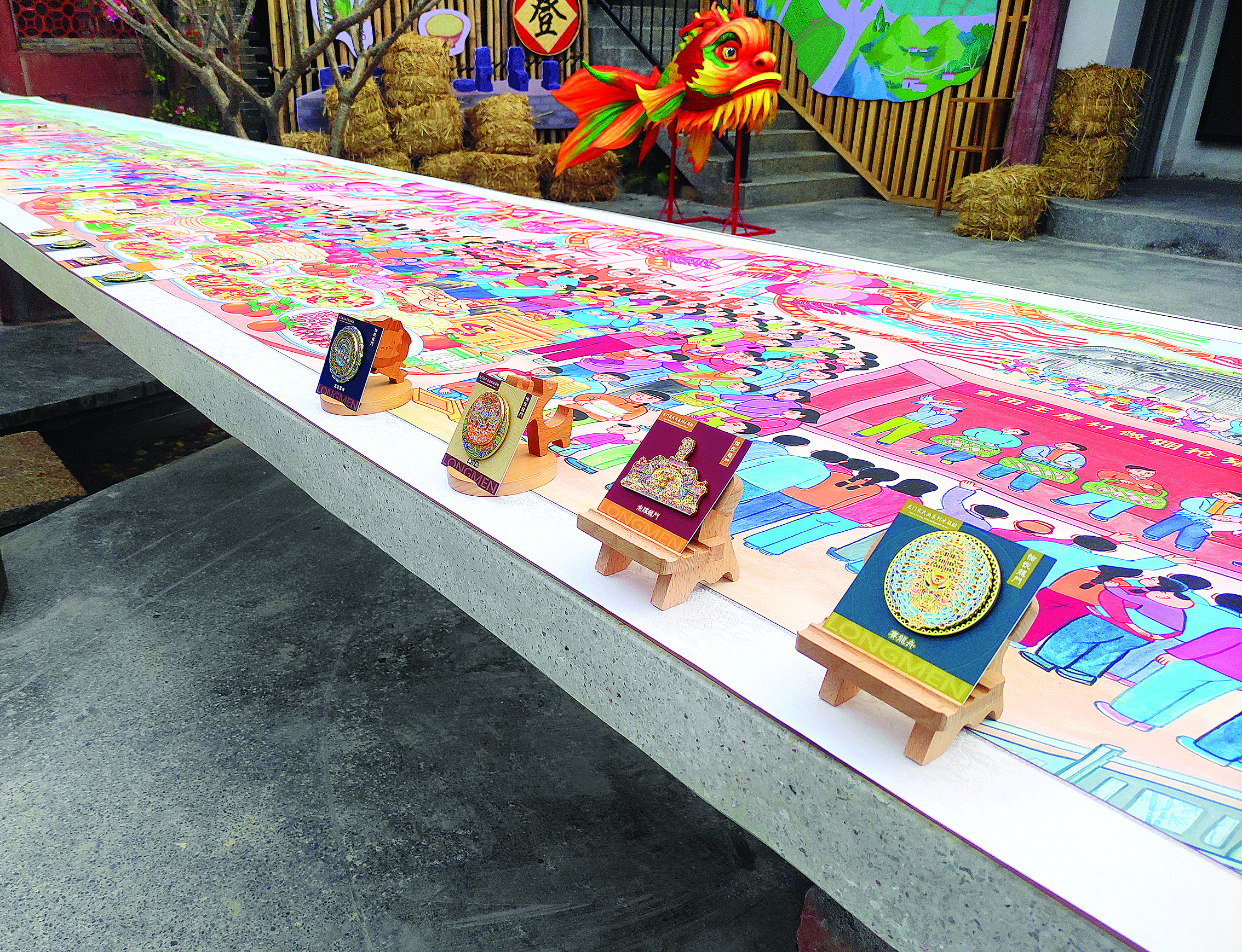 龍門農(nóng)民畫系列冰箱貼在龍門縣龍華鎮(zhèn)長(zhǎng)灘藝術(shù)村首度亮相。