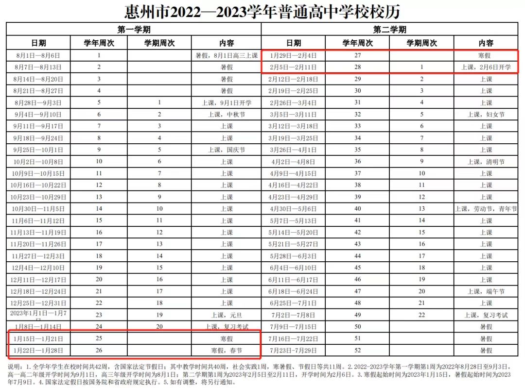 惠州市普通高中寒假起始時(shí)間為2023年1月15日開始;開學(xué)時(shí)間為2月6日。