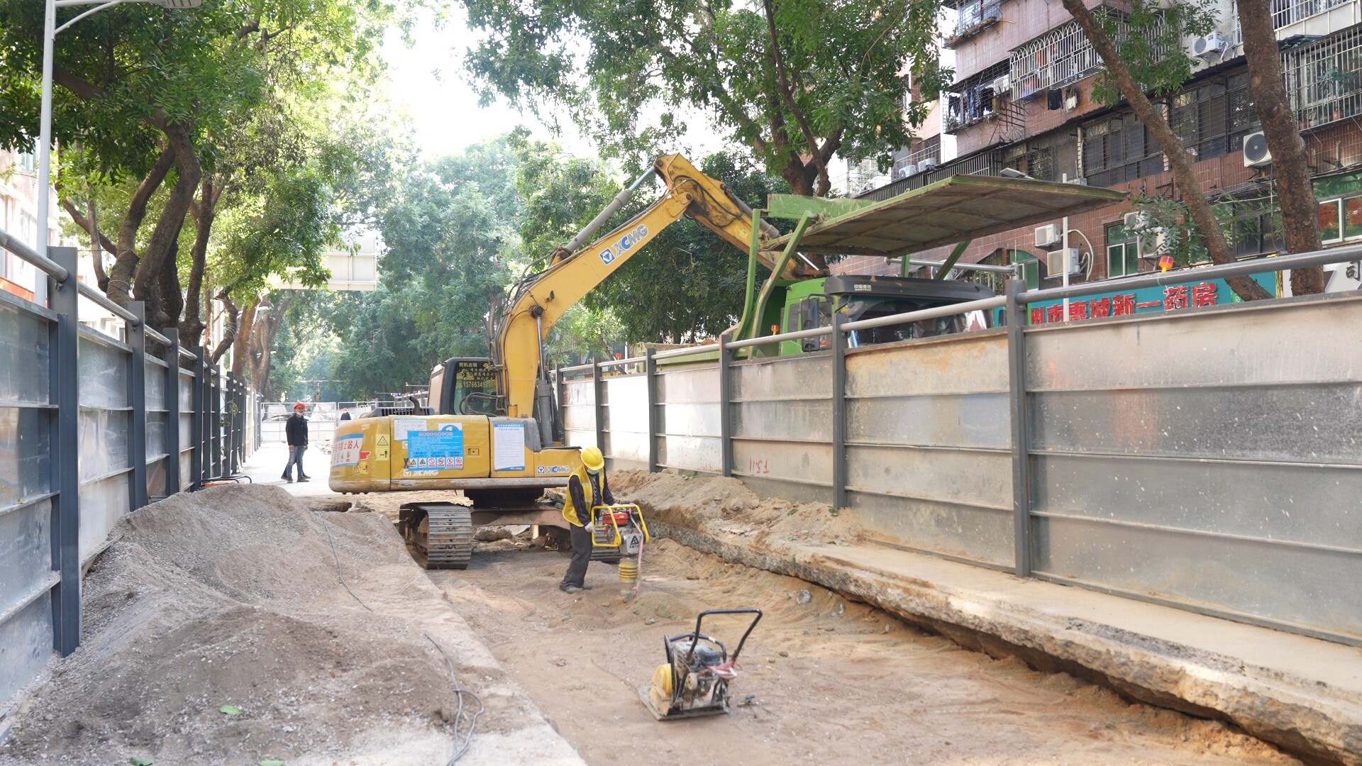 距離病害修復(fù)項(xiàng)目6公里的西湖環(huán)湖污水管網(wǎng)改造工程(以下簡(jiǎn)稱“環(huán)湖污水管網(wǎng)改造”)龍豐路施工現(xiàn)場(chǎng),轟鳴聲此起彼伏,一派熱火朝天的施工場(chǎng)景。