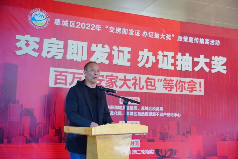 “送出542份大獎(jiǎng),總價(jià)值約100萬(wàn)元安家大禮包……”2023年1月6日,惠城區(qū)2022年“交房即發(fā)證 辦證抽大獎(jiǎng)”政策宣傳抽獎(jiǎng)活動(dòng)圓滿結(jié)束。本次活動(dòng)活動(dòng)由惠城區(qū)住房和城鄉(xiāng)建設(shè)局、惠城區(qū)稅務(wù)局、惠城區(qū)科技工業(yè)和信息化局、惠城區(qū)自然資源局不動(dòng)產(chǎn)登記中心指導(dǎo),惠州市房地產(chǎn)業(yè)協(xié)會(huì)主辦。當(dāng)天,惠城區(qū)住建局副局長(zhǎng)吳俊霖、惠城區(qū)稅務(wù)局副局長(zhǎng)莫清莉、惠州市房協(xié)常務(wù)副會(huì)長(zhǎng)譚建文、監(jiān)事長(zhǎng)許偉東、秘書(shū)長(zhǎng)劉瀟等參加了活動(dòng)。