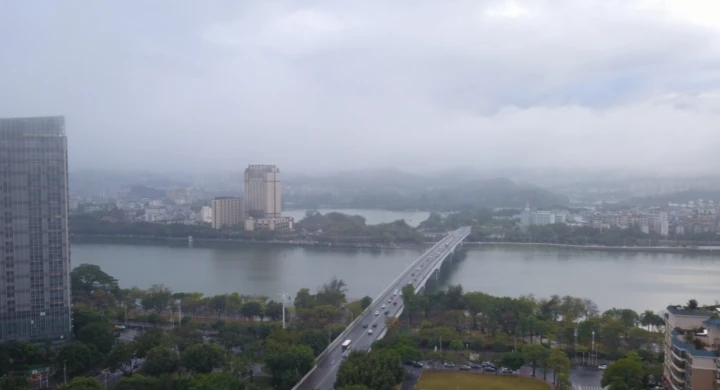 1月13日下午5時(shí)左右,受大霧天氣影響,市區(qū)江北的城市建筑在大霧中若隱若現(xiàn)。當(dāng)日,惠州市氣象臺(tái)發(fā)布“大霧黃色預(yù)警信號(hào)”,多個(gè)地區(qū)能見(jiàn)度小于500米。