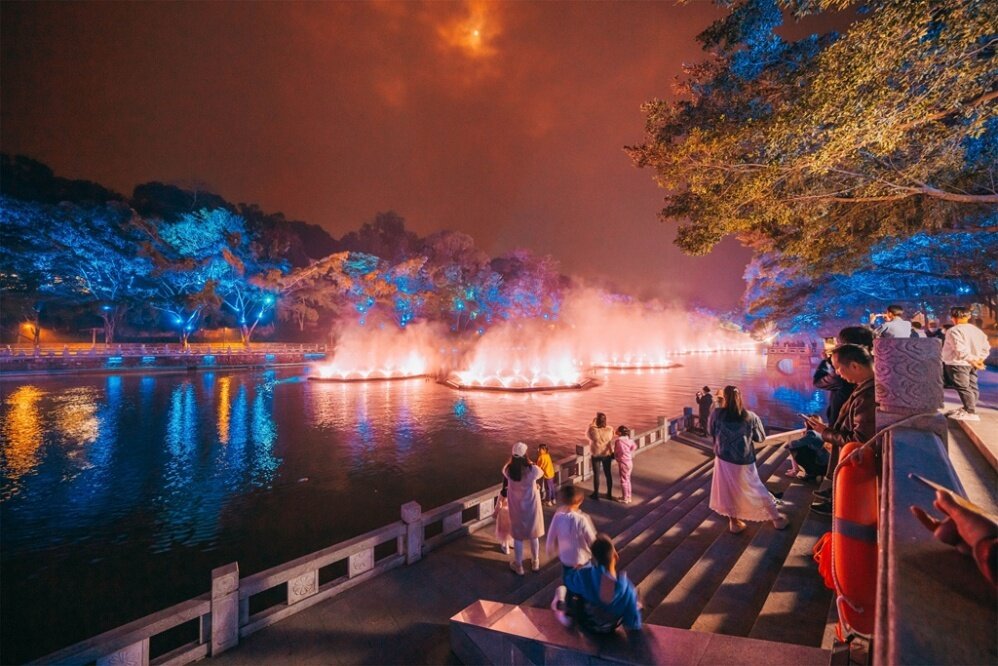 2022年1月15日,羅浮山夜間燈光噴泉首秀,通過激光、燈光、水幕、噴泉等技術(shù)手段,實現(xiàn)跨媒體的現(xiàn)代化噴泉水秀表演。