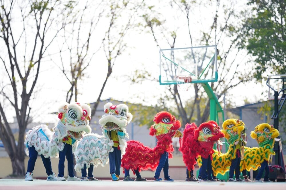 2022年3月3日,惠州汝湖小學,學生們利用課余時間練習麒麟舞。