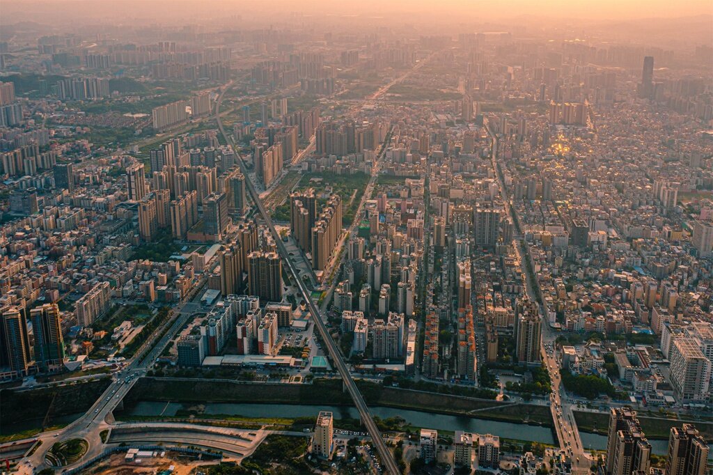 2022年4月6日,航拍夕陽下的惠陽區(qū)淡水老城區(qū)。