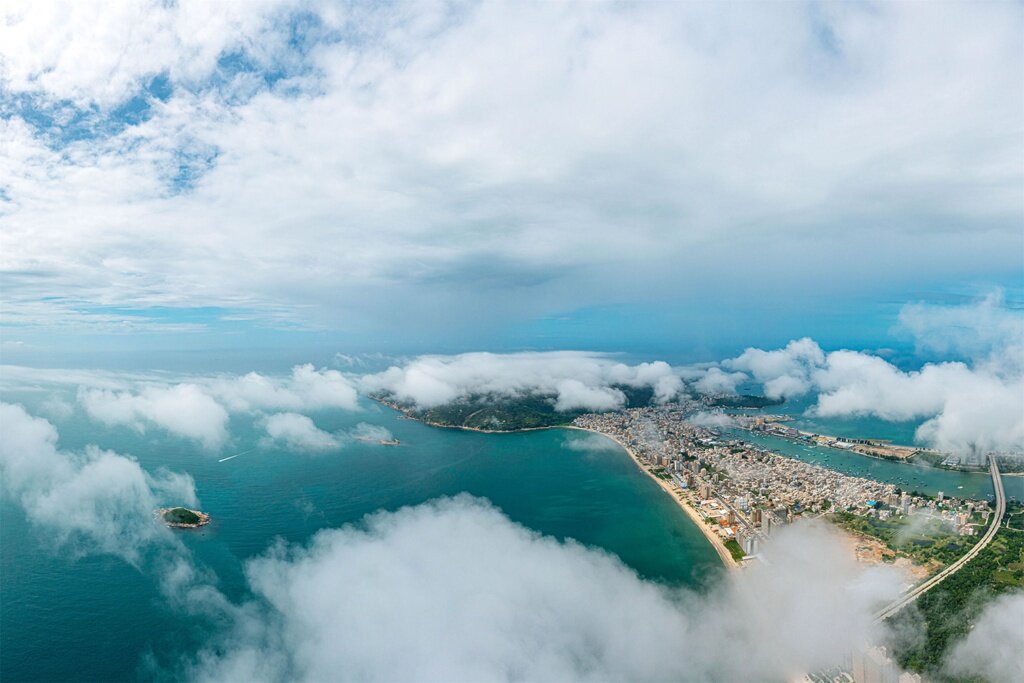 2022年5月29日,惠東雙月灣被云朵包圍,別有一番風景。