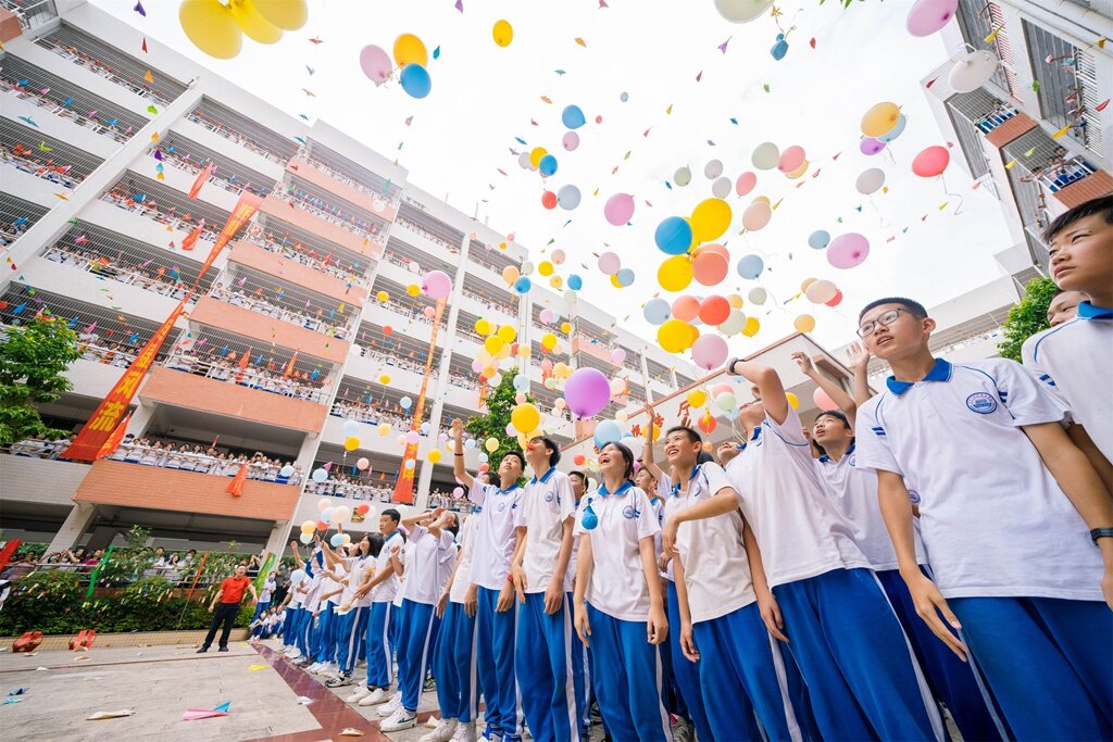 2022年6月2日,2022高考前夕,惠州綜合高中的同學們放飛氣球為考試祈福。