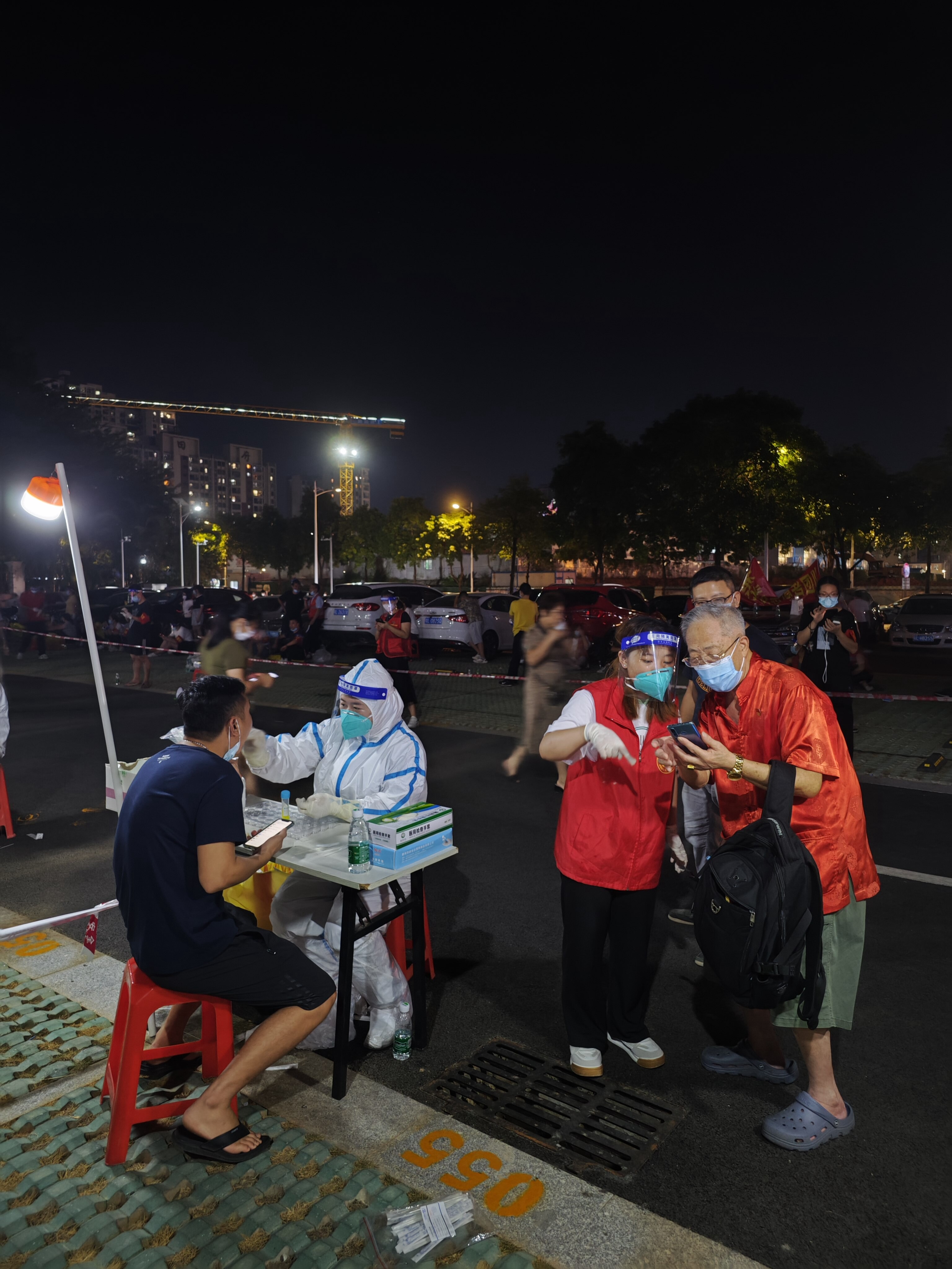 2022年10月6日,惠州江北一處大規(guī)模核酸現(xiàn)場,志愿者正在為老年人進行服務(wù)。