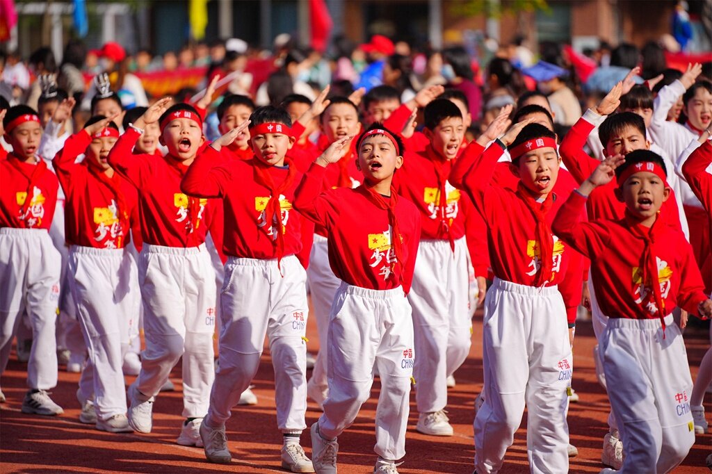 2022年12月9日,華南師范大學附屬惠陽學校舉行校運會,開幕式上隨處可見濃烈的中國元素。