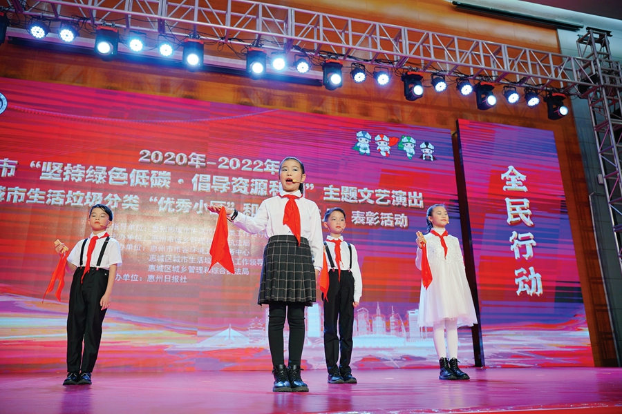 為強化垃圾分類宣傳,促進群眾分類意識提升,助力惠州市城市生活垃圾分類工作高質(zhì)量發(fā)展,1月15日下午,2020~2022年惠州市“堅持綠色低碳·倡導(dǎo)資源利用”主題文藝演出暨城市生活垃圾分類“優(yōu)秀小區(qū)”和“分類達(dá)人”表彰活動在惠州日報社三樓演播廳舉行。市、縣(區(qū))城市生活垃圾分類工作領(lǐng)導(dǎo)小組成員單位相關(guān)人員,街道、社區(qū)、物業(yè)小區(qū)等相關(guān)人員參與活動。
