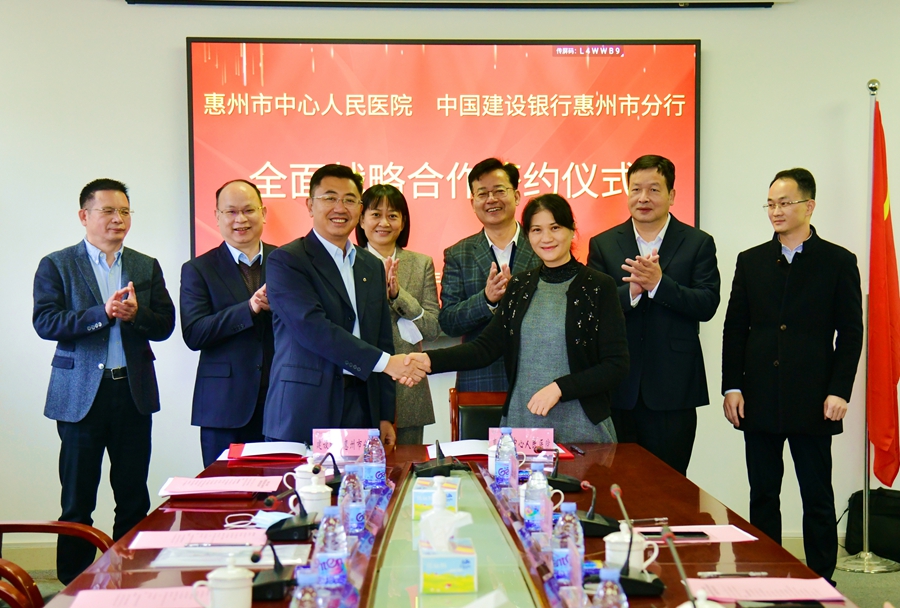 建行惠州市分行與惠州市中心人民醫(yī)院簽訂全面戰(zhàn)略合作協(xié)議。