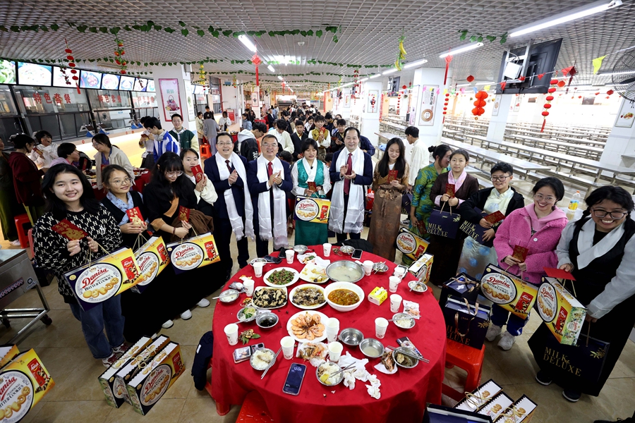 今年春節(jié),市華羅庚中學(xué)西藏部有130多位學(xué)生留在惠州過年。除夕中午,學(xué)校食堂特別熱鬧,校領(lǐng)導(dǎo)、老師和藏班生一起吃團(tuán)年飯,給他們發(fā)春節(jié)利是、禮物,不少老師特意趕到學(xué)校,邀請(qǐng)藏族學(xué)生到家里吃年夜飯,一起歡度春節(jié)。大年初一,學(xué)校老師們還會(huì)到學(xué)校給西藏部學(xué)生拜年,一起品嘗客家和藏族的年貨。