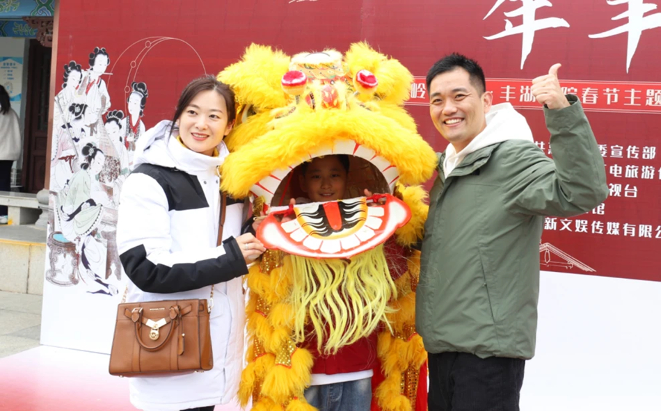 舞獅表演結(jié)束后,北方來(lái)惠的一家三口對(duì)南方舞獅文化很感興趣。