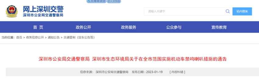 深圳全市范圍機(jī)動(dòng)車禁鳴喇叭