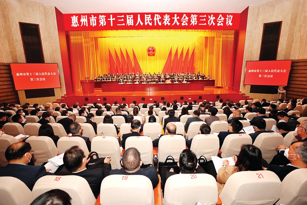 惠州日?qǐng)?bào)訊 (記者袁暢)2月7日上午9時(shí),在雄壯的國(guó)歌聲中,惠州市第十三屆人民代表大會(huì)第三次會(huì)議在市會(huì)議中心開(kāi)幕。