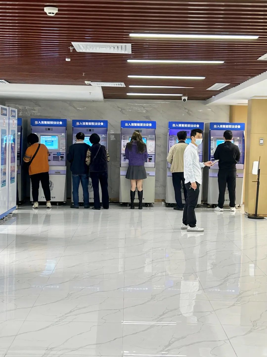 記者在現(xiàn)場看到,可以直接在出入境智能簽注設(shè)備續(xù)簽簽注,并且毋需提前預(yù)約。