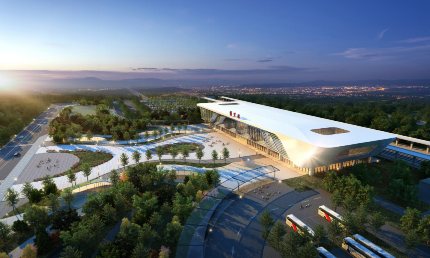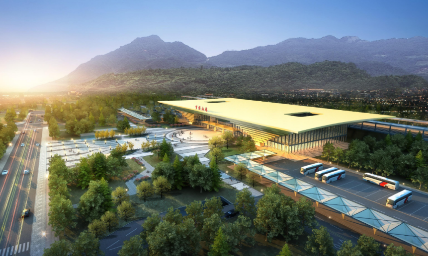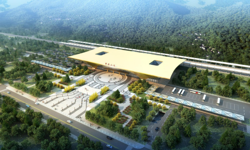 惠城南站設(shè)在三棟鎮(zhèn)以北,從效果圖來看,惠城南站站房外觀設(shè)計以疊瓦形式,呈現(xiàn)“重檐疊瓦、鱗紋蕩漾”風格,具有惠州傳統(tǒng)建筑意象。