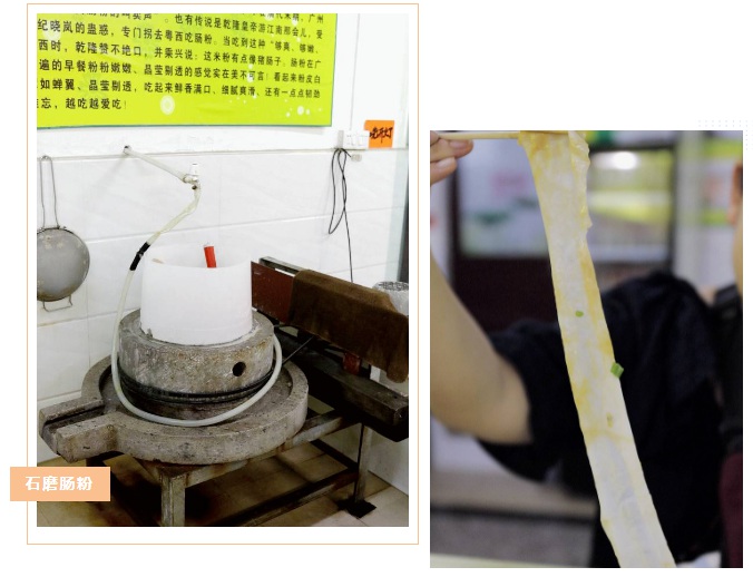 位于龍豐的西關(guān)腸粉,在店內(nèi)擺放了一臺石磨,每天凌晨三點至早上七點都在研磨著米漿,若是來得早,還能一睹石磨“開工”的狀態(tài)。
