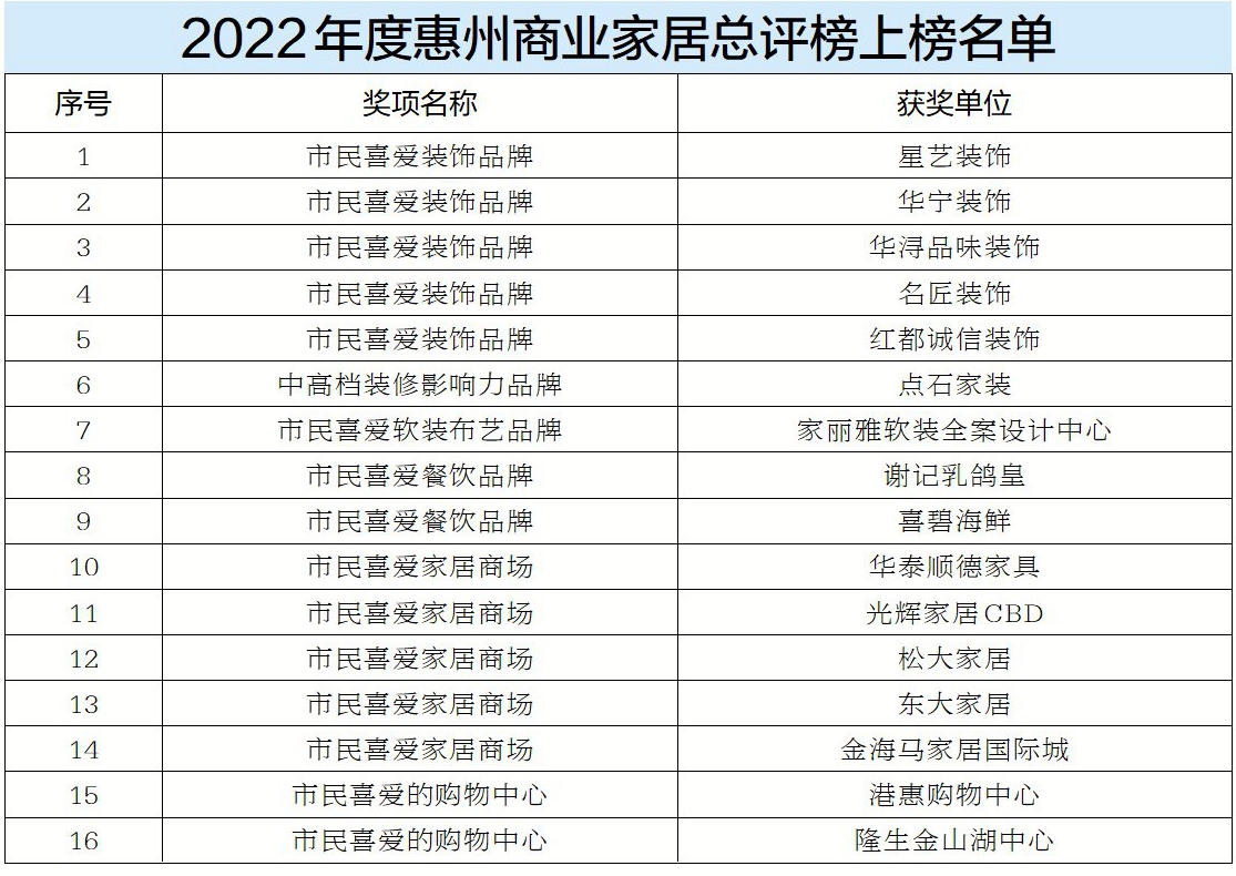 惠州日報社主辦的2022年度惠州商業(yè)家居總評榜揭曉